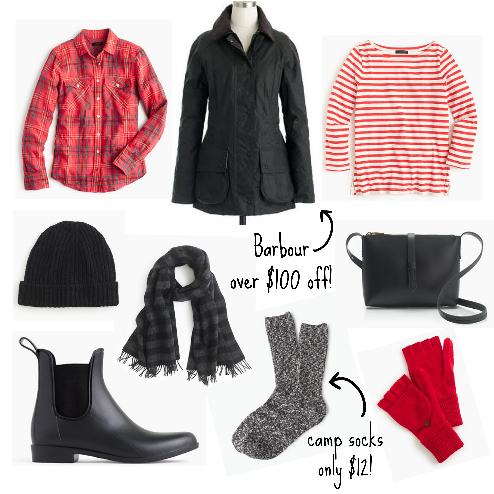 When I saw my jacket on sale, I decided to write a post about how I style mine! (PS all of these items are on sale right now.) I love wearing it over plaid shirts. This one is 30% off and perfect for Christmas! I also love wearing it with simple tees like this striped one. The camp socks that I wear with my duck boots are 30% off making them $12! I am also loving these rain booties that are only $42. They look so chic they could be worn with any outfit and even if it isn't raining! I still can't believe this jacket is on sale and I'm sure it will sell out when more people see it!